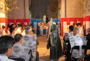 建物の新築、或いは各種土木工事の起工に際して、その敷地の守護神を祭って神慮を和め、土地の平安を祈願する祭りです。